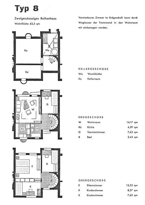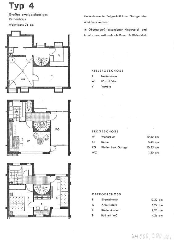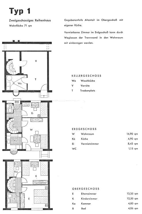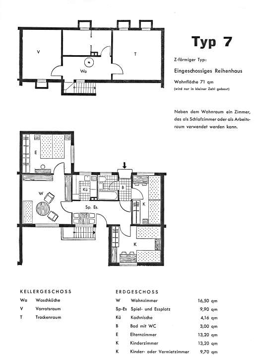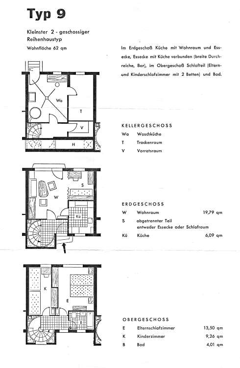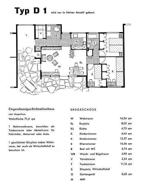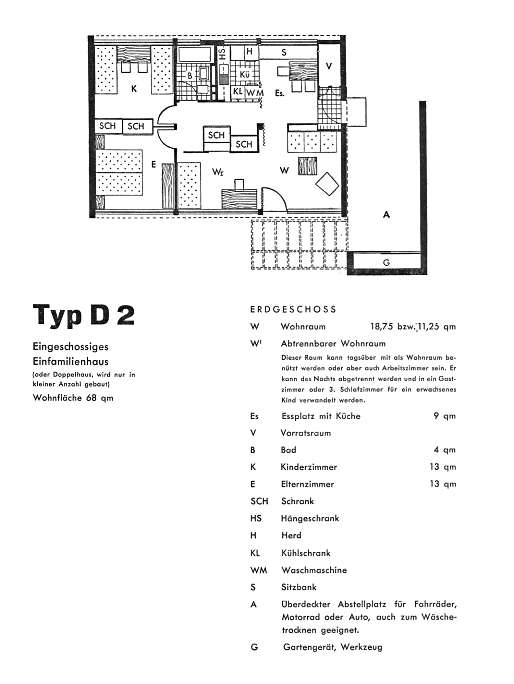 Es gibt in der MSA-Siedlung nur wenige unterschiedliche Haustypen, von denen hier einige mit den Ursprungsplänen (mit den ursprünglichen Wohnflächen) dargestellt werden: