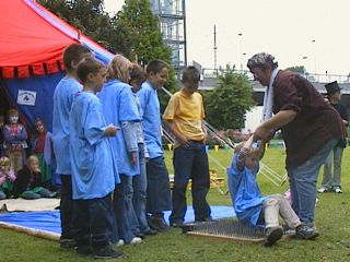 Der erste Programmpunkt waren die Jongleure, die mit Kunststücken am Diabolo die Zuschauer erfreuten.